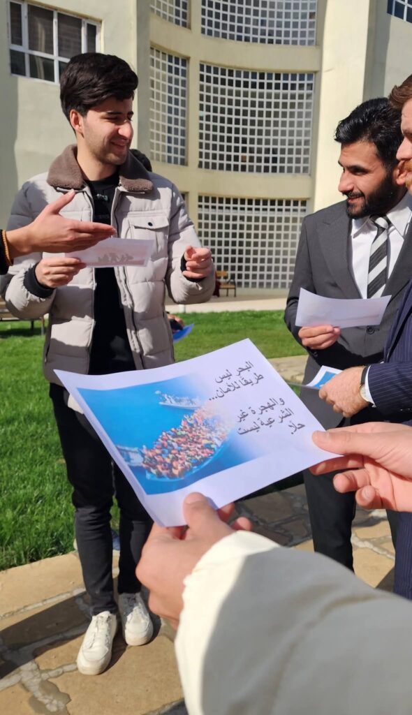 أقامت شعبة الإعلام والاتصال الحكومي في كلية الحاسبات والمعلوماتية، بالتعاون مع وحدة التعليم المستمر، وبمشاركة المعاون العلمي للكلية وعدد من أساتذة الكلية، حملةً تطوعية للتوعية بمخاطر الهجرة غير الشرعية، استهدفت الطلبة، بهدف ترسيخ ثقافة الوعي المجتمعي وتعزيز روح المسؤولية لدى فئة الشباب.