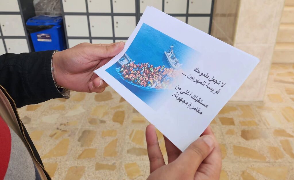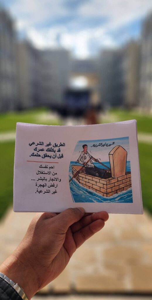 تضمّنت الحملة تقديم بوسترات توعوية للطلبة تناولت المخاطر الاجتماعية والإنسانية المترتبة على الهجرة غير الشرعية، وأهمية الوعي في اتخاذ القرارات المصيرية المرتبطة بالمستقبل العلمي والمهني، فضلًا عمّا حملته من عبارات إرشادية ورسائل توعوية تسهم في نشر الوعي بين الطلبة.