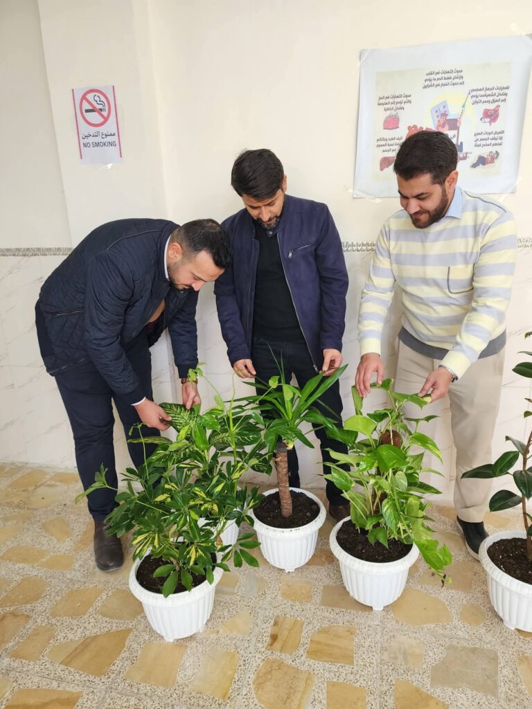 The campaign witnessed the participation of faculty members and students, during which plant pots were brought in and distributed to be placed in the college corridors. The initiative aimed to add an aesthetic touch, improve the university environment, and raise awareness of the importance of caring for green spaces within the university campus.