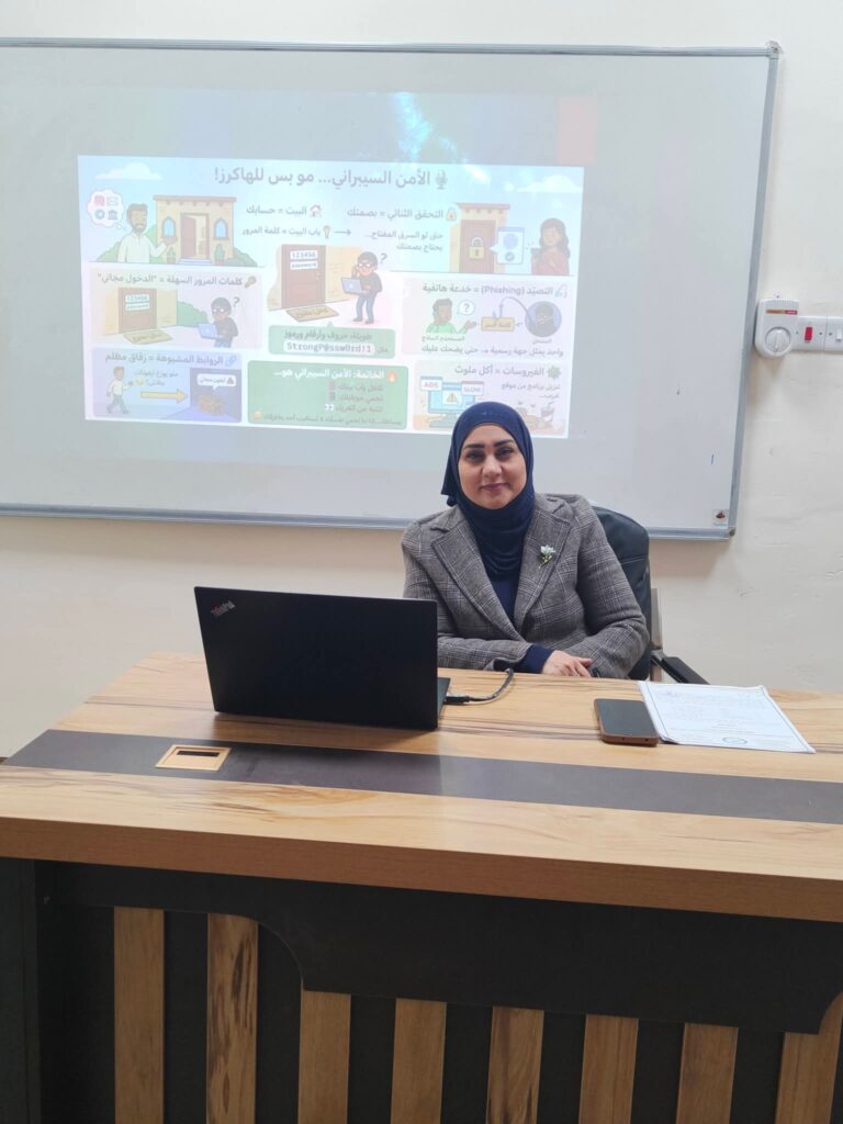 The workshop aimed to equip participants with the necessary knowledge to understand the concepts of digital security and its importance in protecting data. It also addressed the most prominent cyber threats and ways to counter them, such as using strong passwords and enabling two-factor authentication. This contributes to enhancing security awareness and empowering participants to use modern technologies in a safe and effective manner.