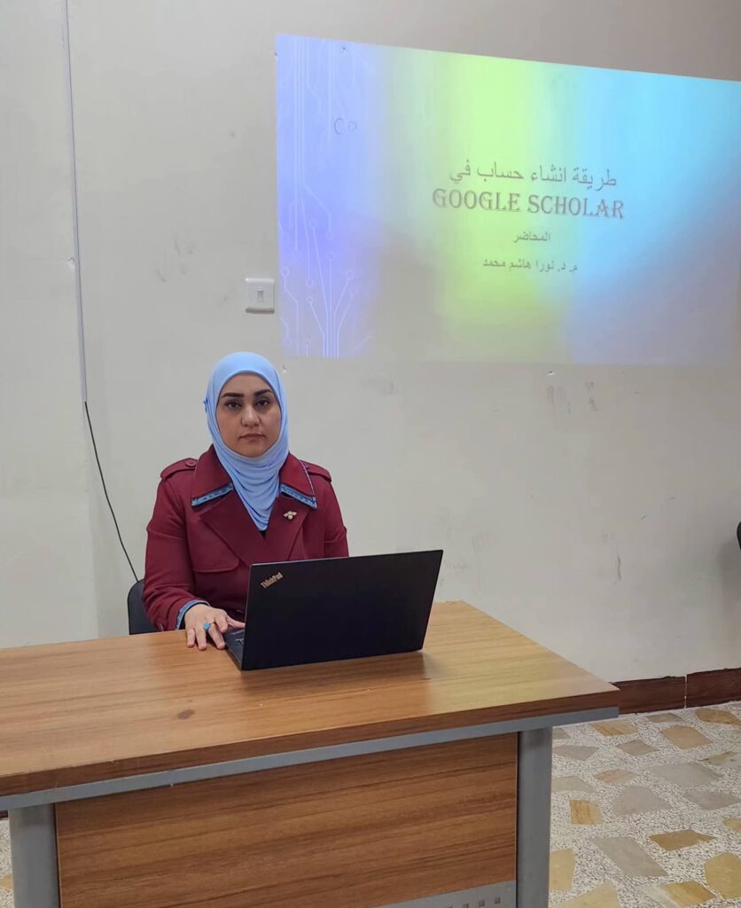 On the third day of the course, a scientific lecture was delivered by Assistant Professor Dr. Noora Hashim Mohammed, in which she discussed an introduction to the Google Scholar platform, its mechanism of use in scientific research, and its importance in accessing reputable academic sources such as research papers, theses, and books.